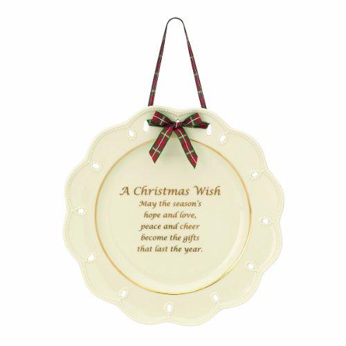 Lenox Christmas Giftables Christmas Wish Plate. Hang this Christmas sentiment on a wall in your entryway, welcoming all guests during the holiday season. The plate is inscribed with: "May the season's hope and love, peace and cheer become the gifts that last the year."
